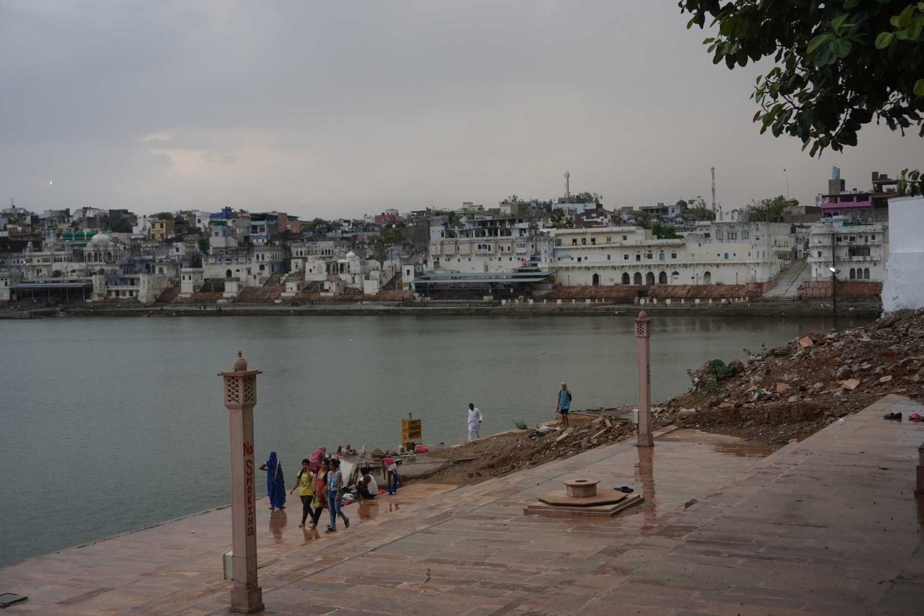 Auf verlöcherten Strassen erreichen wir Pushkar, den heiligen Hindu-Pilgerort am Rande der Wüste Thar. Der Schöpfergott Brahma soll für die Entstehung dieses Ortes verantwortlich gewesen sein. Der von weiss getünchten Tempeln und Badetreppen umgebene See ist heute eine von Indiens heiligsten Stätten. Da das Seewasser während der Glück verheissenden Vollmondphase im Oktober/November die Seele von sämtlichen Befleckungen reinigen soll, strömen zu dieser Zeit Tausende von Pilger zusammen. Während diesen Tagen im Monat Kartika findet hier auch der grösste Kamelmarkt der Welt statt.