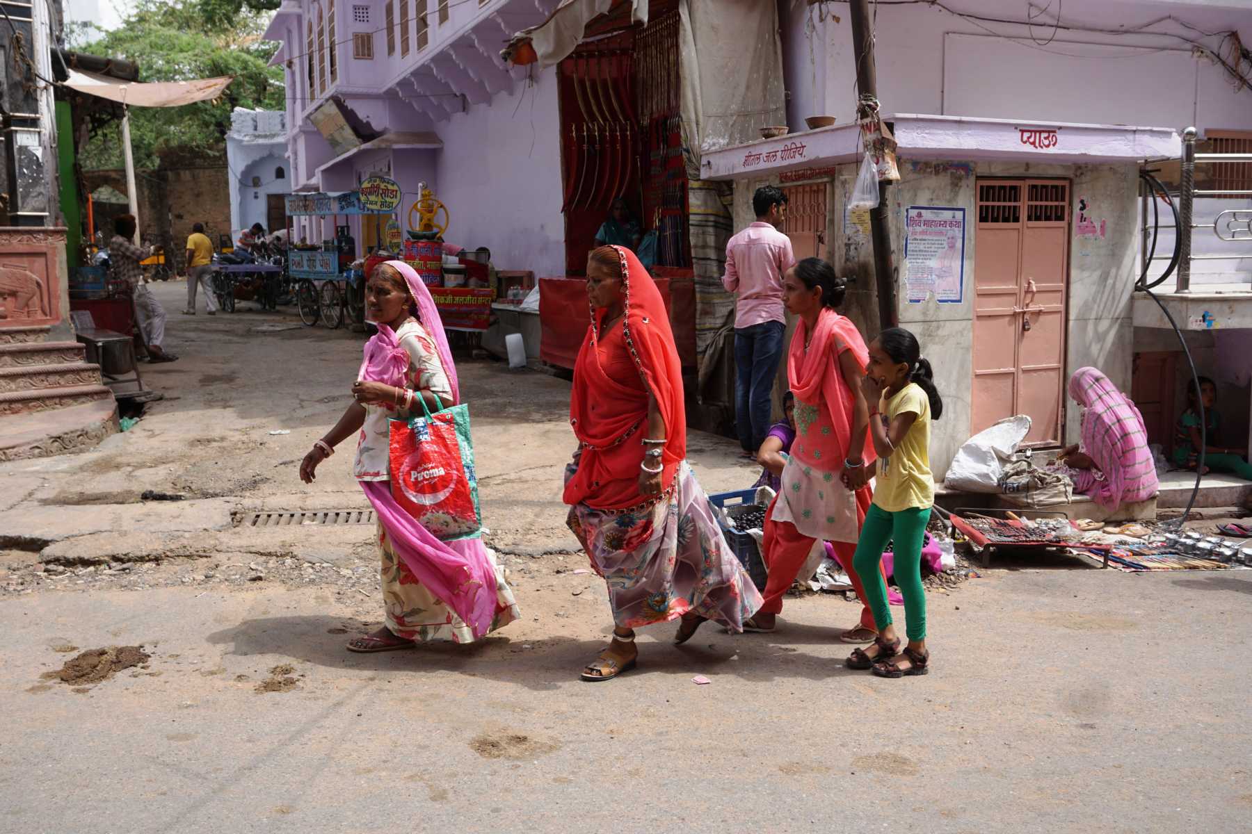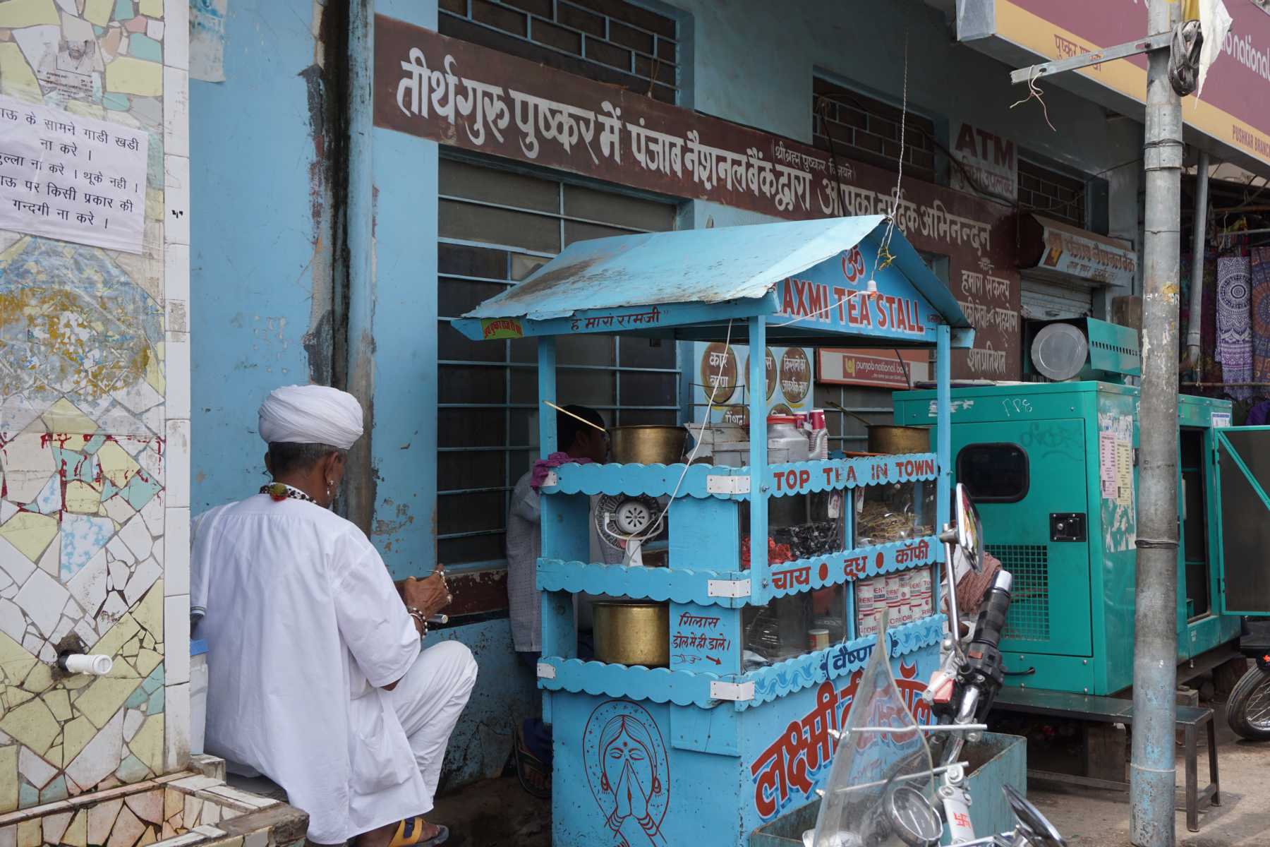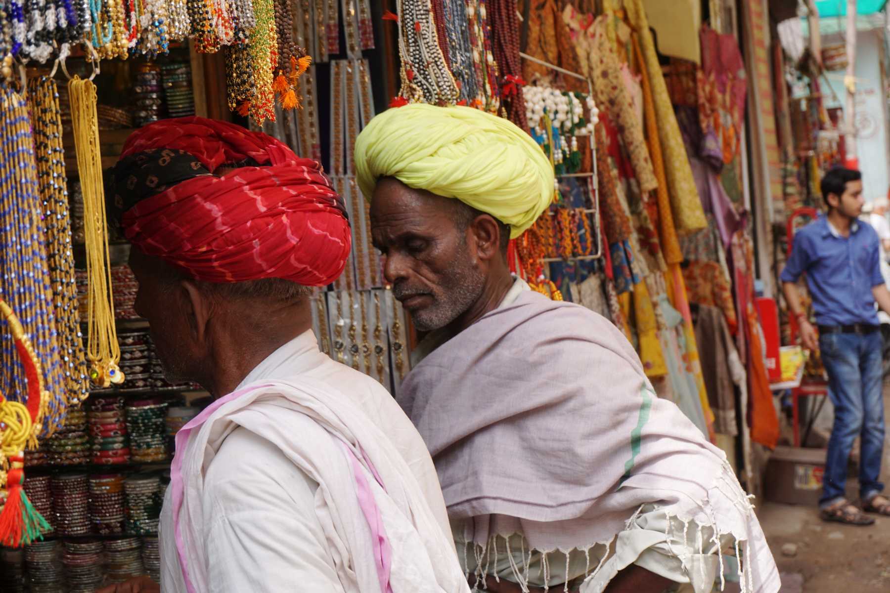 In der jetzigen heissen Zeit sind die Pilger lange nicht so zahlreich, doch wir sind nicht allein. Frauen in wunderbar leuchtenden Saris oder wallenden Röcken schlendern durch die engen Gassen. Männer mit kunstvoll geschlungenen Turbanen auf dem Kopf sitzen bei einem Gläschen Chai beim Schwatzen. Allerdings gleicht das Dorf eher einem Souvenirmarkt, denn einer heiligen Stätte. Ein Silberverkäufer erzählt, dass die Saison in den letzten Jahren von zehn auf sechs Monate geschrumpft ist. Jetzt muss natürlich alles in kürzerer Zeit an den Mann und die Frau gebracht werden.