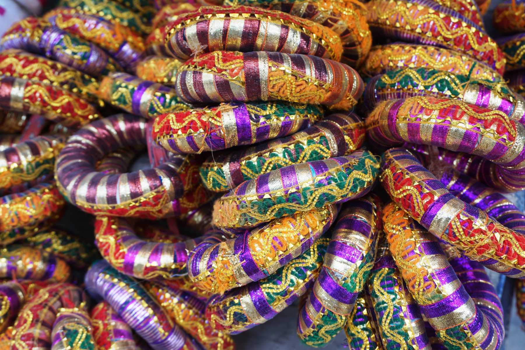 Stark riechende Kamellederwaren, stoffgebundene Bücher, geschnitzte Elefanten, messingglänzende Glöckchen, bestickte Schnabelschuhe, bunte Kleider in indischen und europäischen Variationen, fein verarbeiteter Silberschmuck – alles wird zwischen Gemüseständen und Futter suchenden Kühen angepriesen. Ja die Kühe, die sind wirklich überall. Kälber und Kühe gehen ja noch, doch wenn uns in der engen Gasse ein bulliger Stier mit mächtigen Hörnern gegenübersteht, wird das Gefühl etwas mulmig. Hoffentlich mag er die rote Bluse nicht. Sogar die Tempelblumen fressen sie auf. Der Verkäufer vom Gemüsestand dreht einer besonders lästigen Lisi den Schwanz um, damit sie Reissaus nimmt.