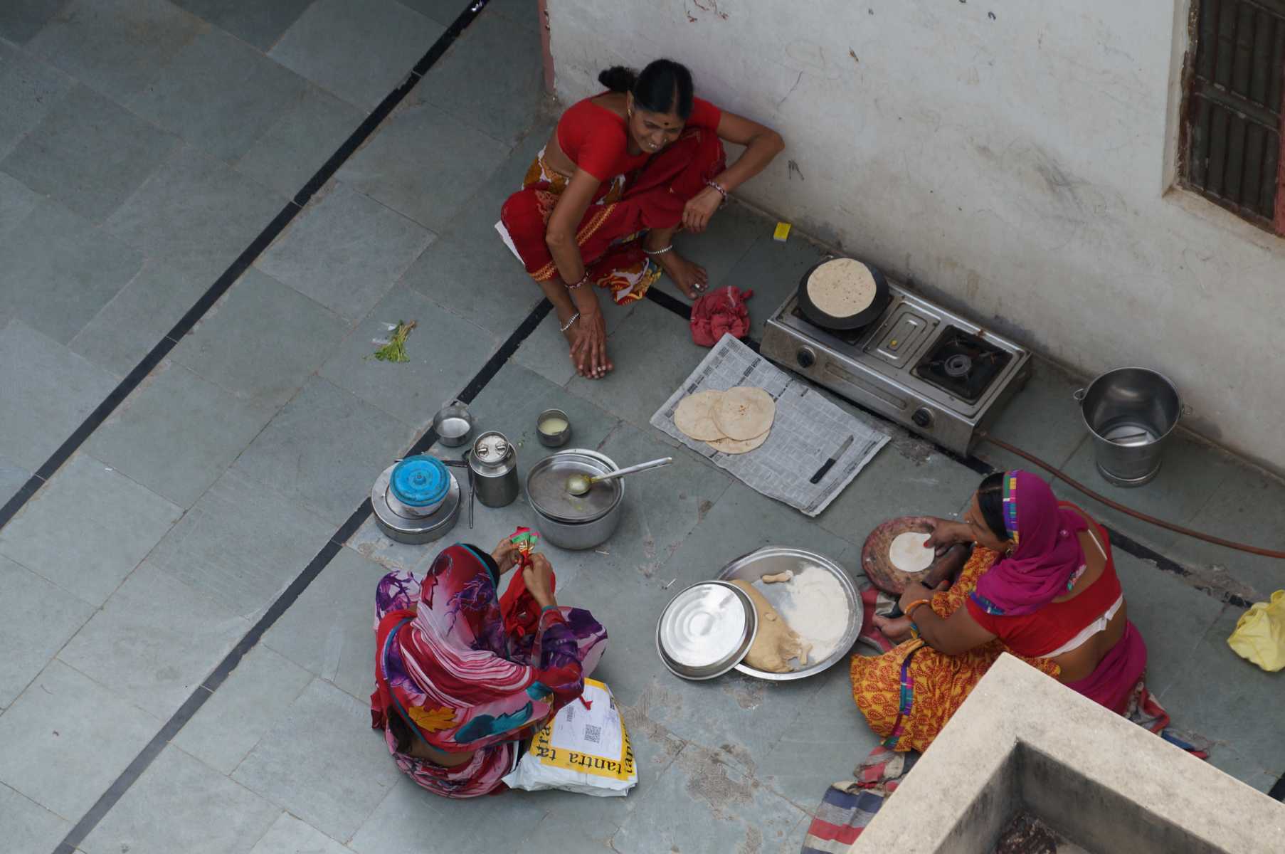 Von den Dachrestaurants haben wir eine wunderbare Aussicht auf die eng zusammengebauten Häuser, den See mit den umliegenden Tempeln. Aus der Moschee ruft der Muezzin, vom Hindu-Tempel klingen die sanften Glöcklein – es geht doch! Viereckige graue Häuser mit Dachterassen wechseln sich mit den prunkvollen weiss getünchten Palastbauten ab. Es ist fast so wie auf der Strasse: arm und reich liegt nah beisammen.