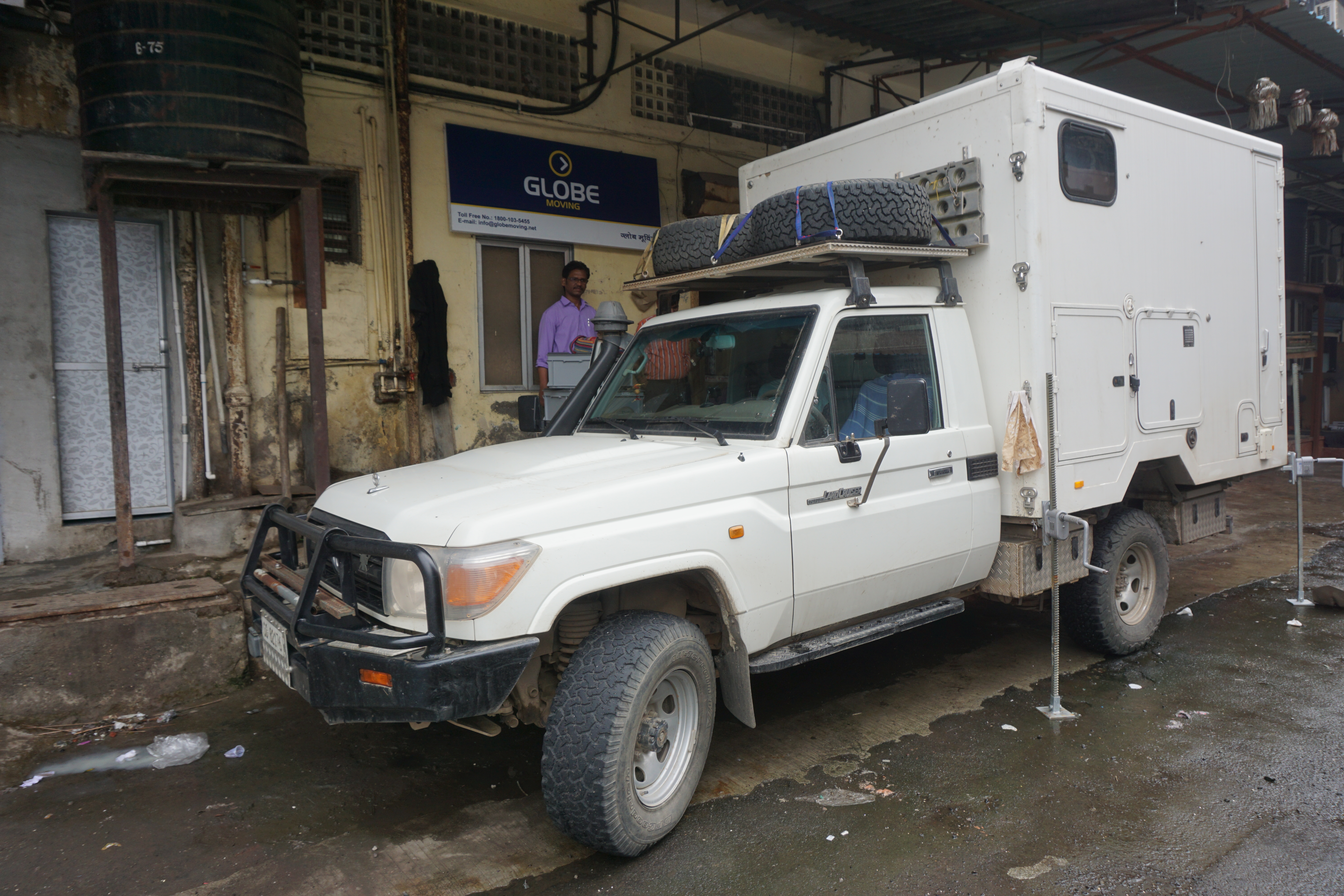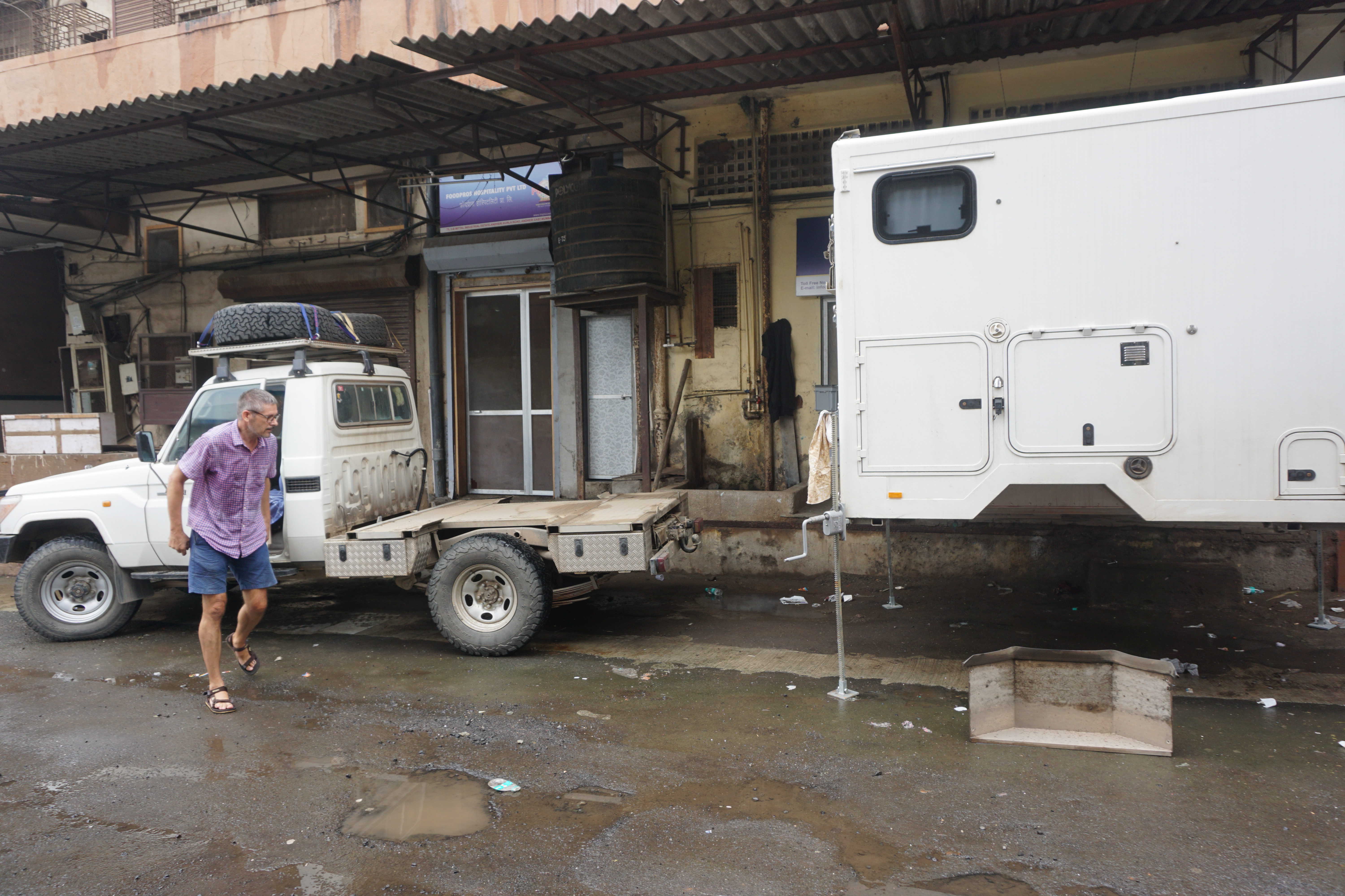 Auf jeden Fall darf das Auto erst in den Container, wenn wir das Land verlassen haben. Es bleibt uns nach Zähneknirschen keine andere Wahl, als die Box vom Paul zu schrauben, daneben zu deponieren und die Schlüssel auszuhändigen. Urs bricht es fast das Herz, sein Ein und Alles (neben mir) so stehen zu lassen. Erinnerungen an Afrika kommen hoch – zum Glück müssen wir nicht zusehen, wie sie die Box in den Container verladen. Hoffen wir auf ein beulenfreies Wiedersehen in der Schweiz.